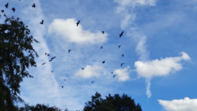 Das Krächzen einer Gruppe von Krähen