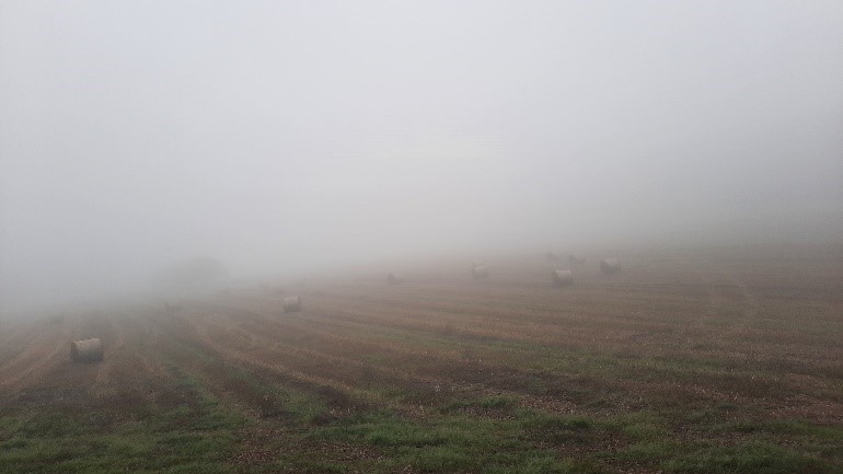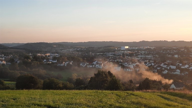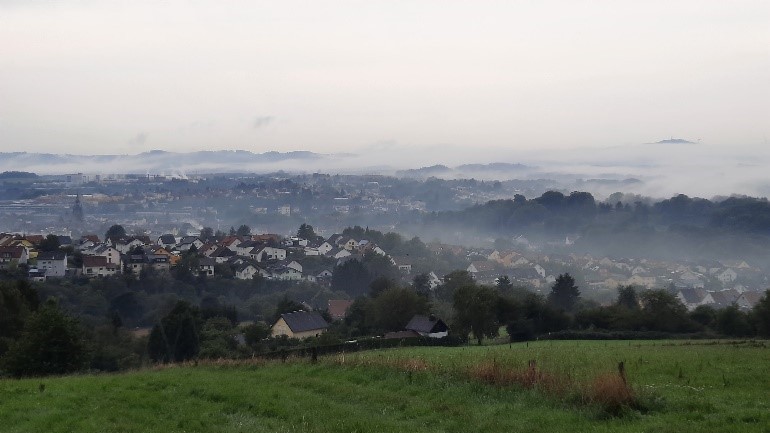 Durch Nebel gedämpfter Stadtlärm