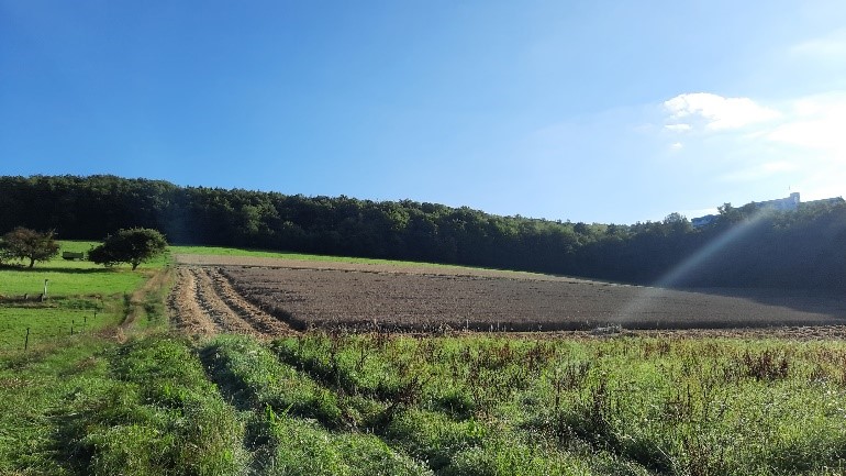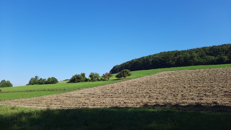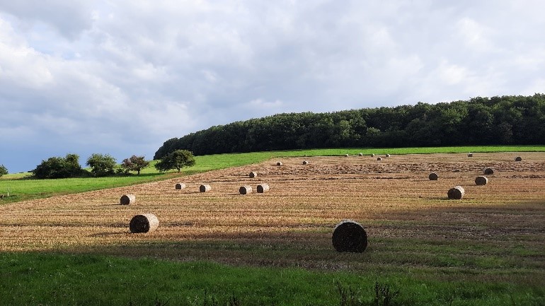 Ein Traktor befährt den Feldweg