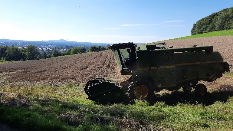 Das Brummen eines Mähdreschers und die Rotation des Schneidwerks