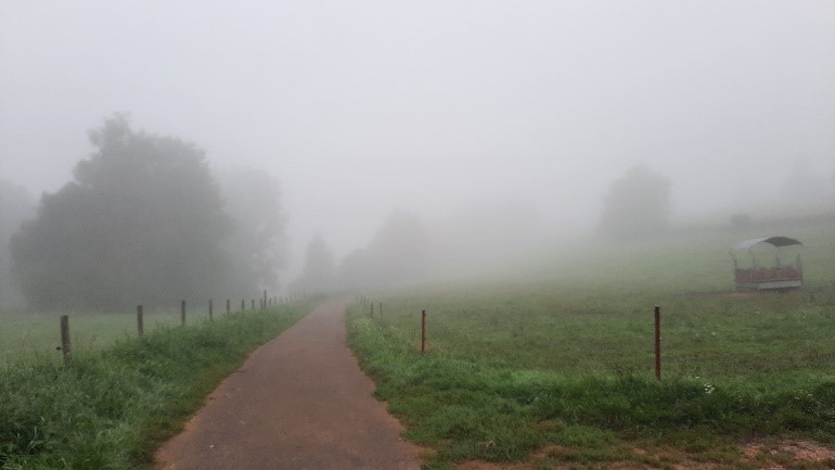 Durch Nebel gedämpfter Stadtlärm